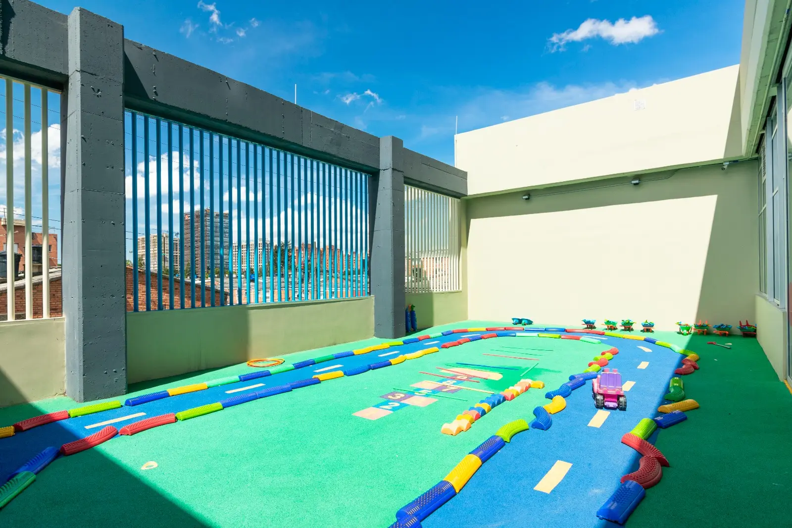 Además, se implementó una fachada modular en Superboard, que aportó un diseño moderno y duradero. Los acabados en pintura abarcaron todo el edificio, complementándose con la pintura y demarcación de áreas en el parqueadero, lo que aseguró un resultado integral y de alta calidad.
