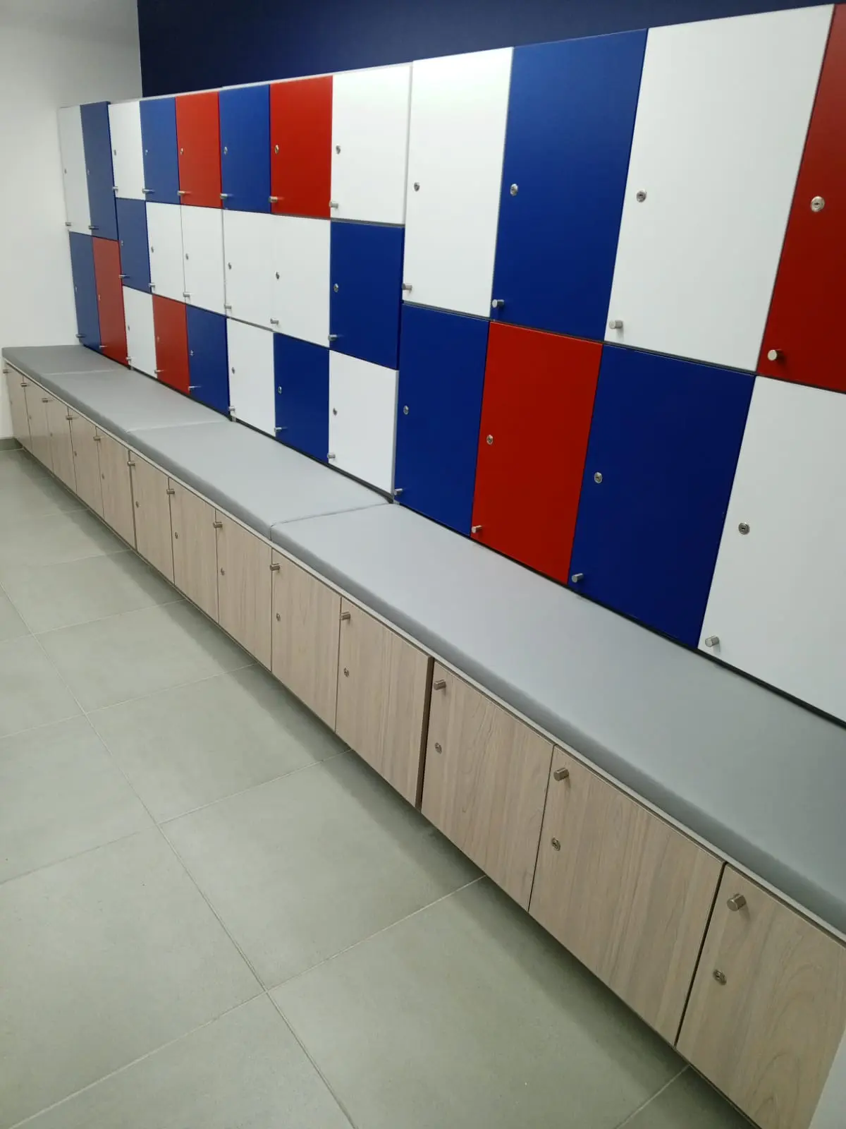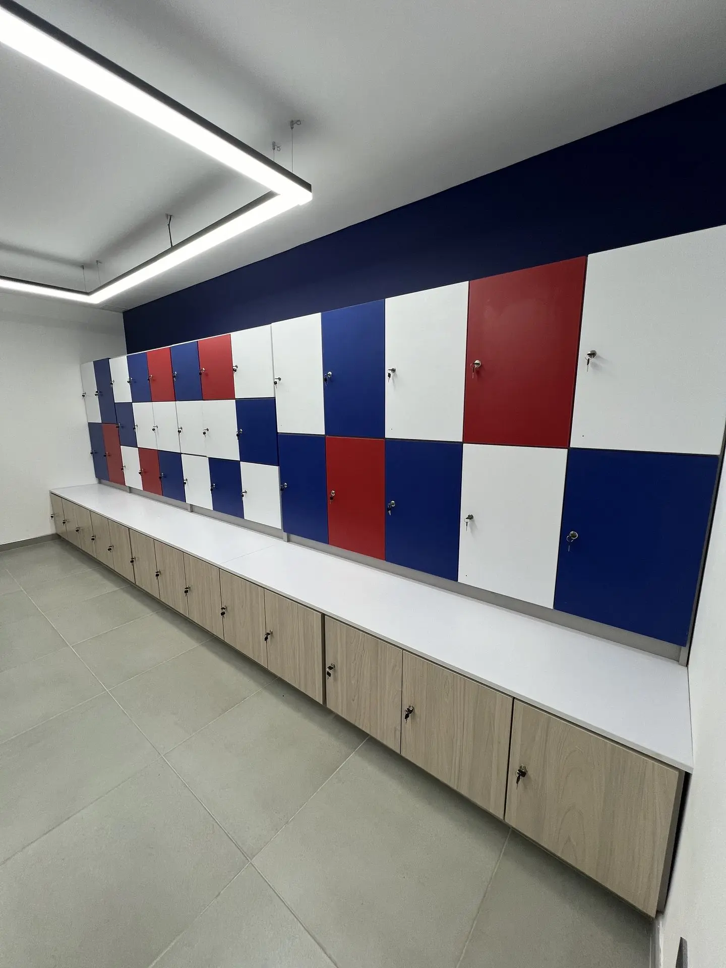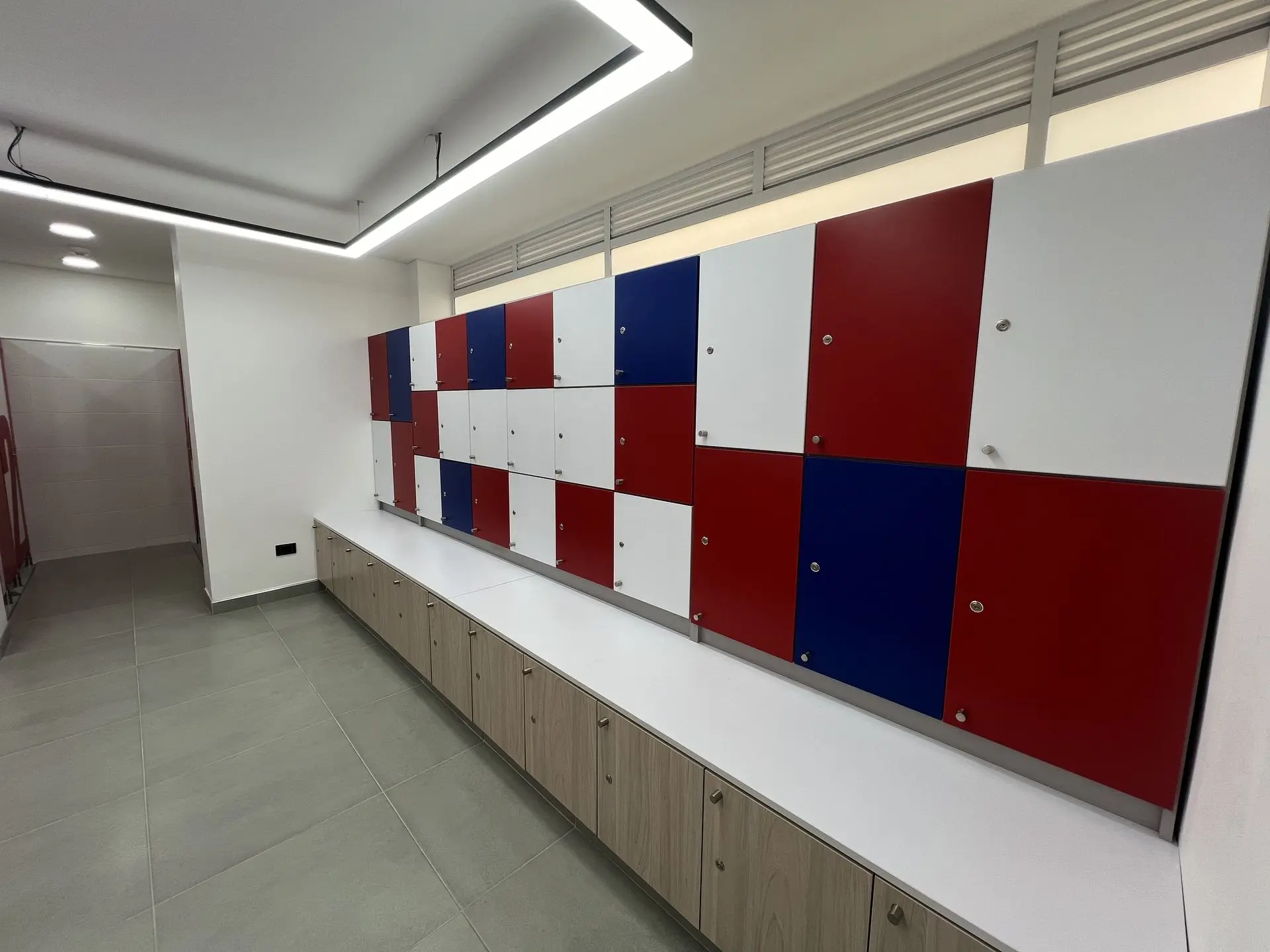 Realizamos la transformación integral de los vestieres del Liceo Francés, abarcando un área de 120 m², mediante un proyecto que combinó funcionalidad, accesibilidad y acabados de excelencia. Las obras incluyeron la demolición total de muros, enchapes, pisos y estructuras existentes, seguida de la instalación de nuevas redes hidráulicas y eléctricas, complementadas con un sistema de iluminación moderna. Incorporamos acabados de alta calidad, como enchapes renovados, divisiones en fenólico (HPL), ventanerías, vidrios y marcos en aluminio. Diseñamos e instalamos lockers funcionales para hombres y mujeres, garantizamos accesibilidad total mediante un salva escaleras y adaptamos todos los elementos sanitarios para personas con discapacidad. Finalmente, ejecutamos un tratamiento de impermeabilización en la cubierta superior para proteger el espacio y asegurar su durabilidad a largo plazo.