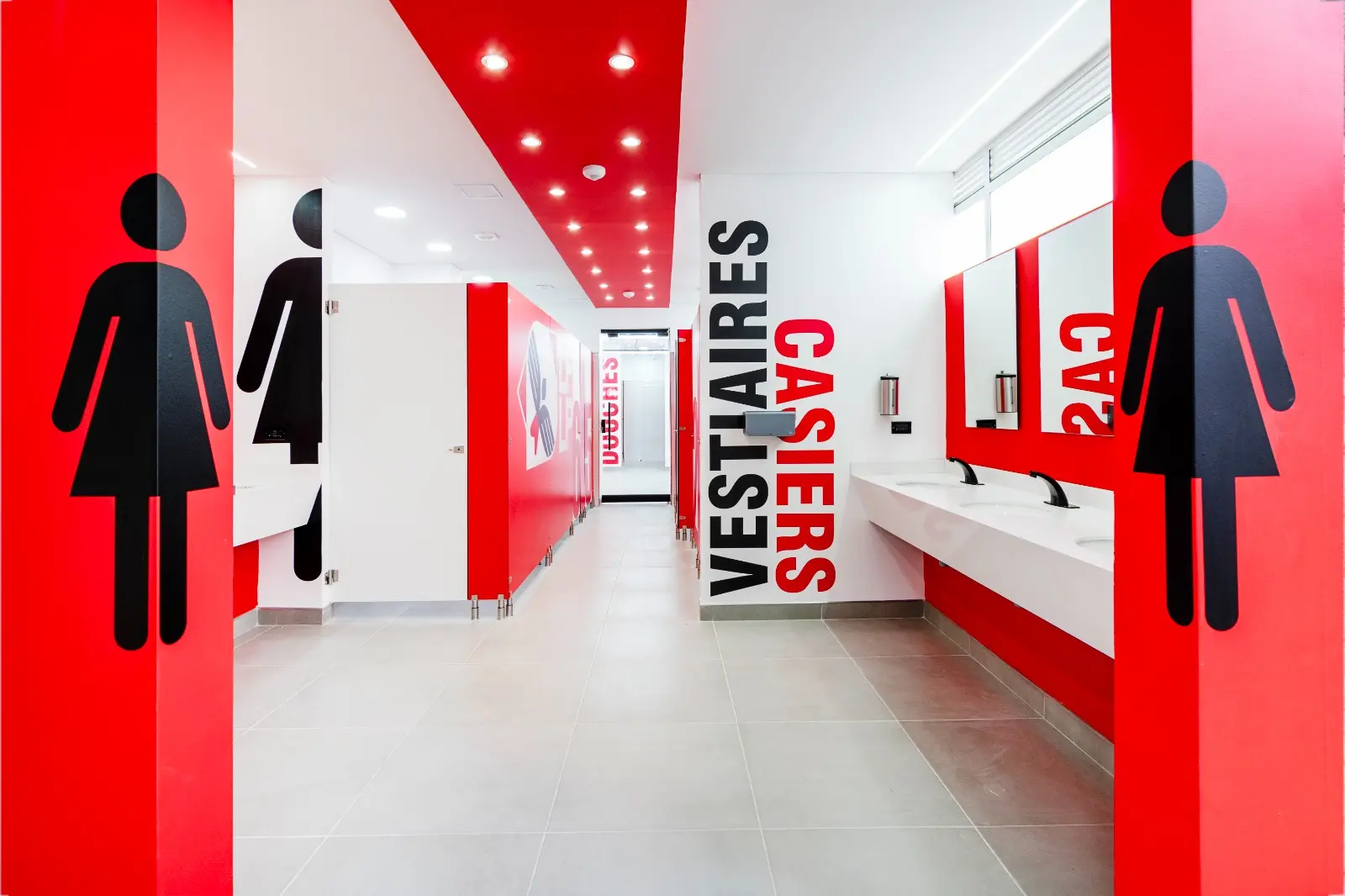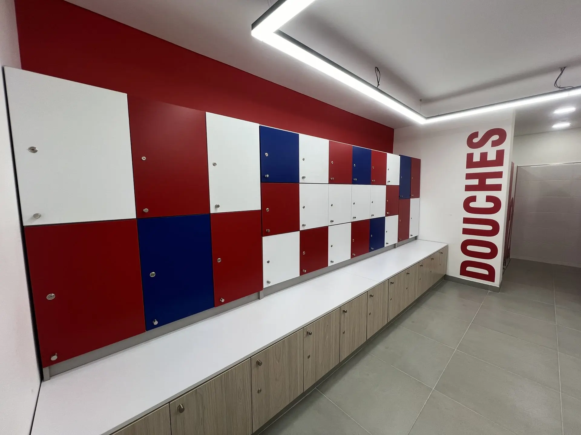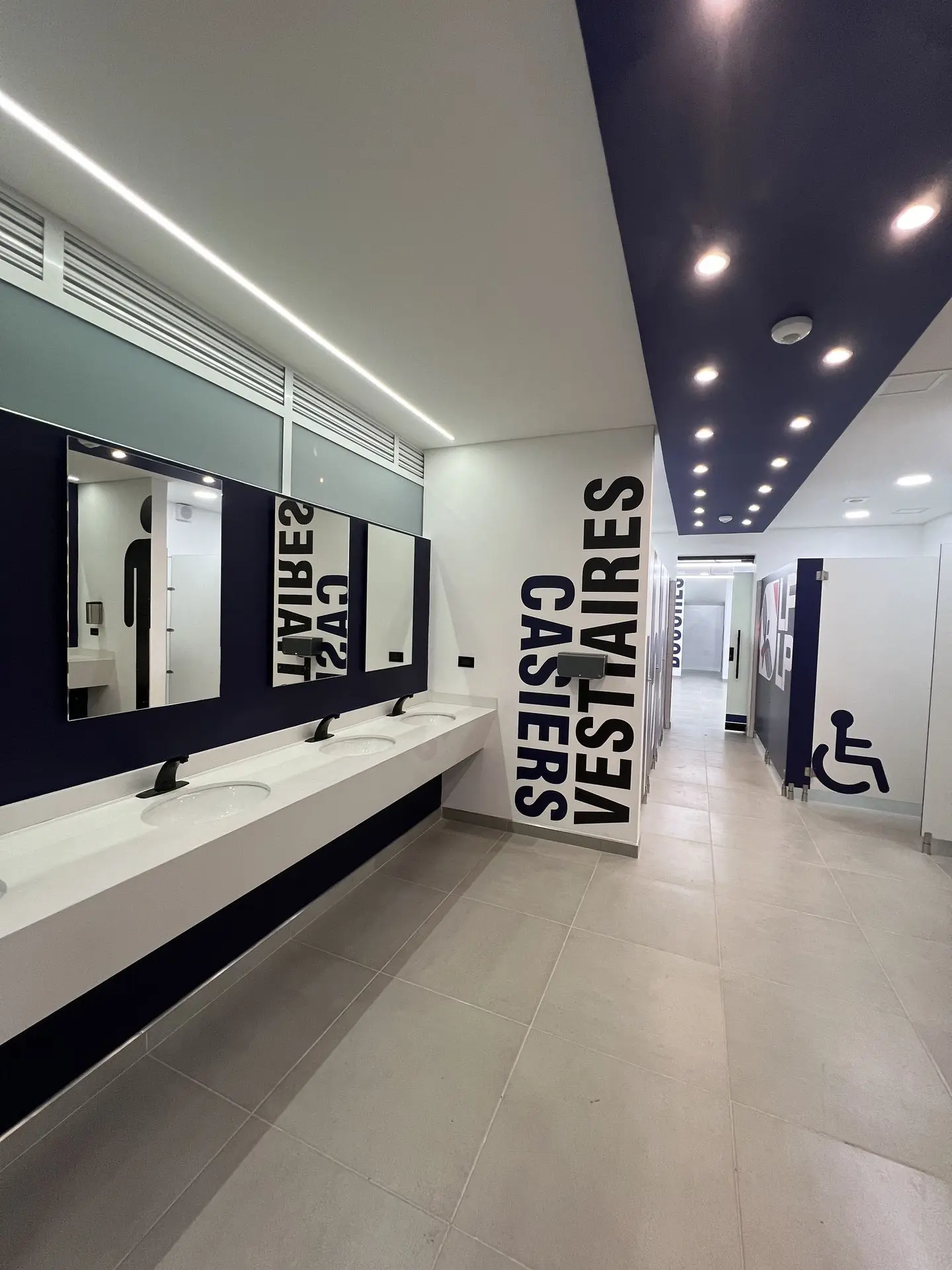 Realizamos la transformación integral de los vestieres del Liceo Francés, abarcando un área de 120 m², mediante un proyecto que combinó funcionalidad, accesibilidad y acabados de excelencia. Las obras incluyeron la demolición total de muros, enchapes, pisos y estructuras existentes, seguida de la instalación de nuevas redes hidráulicas y eléctricas, complementadas con un sistema de iluminación moderna. Incorporamos acabados de alta calidad, como enchapes renovados, divisiones en fenólico (HPL), ventanerías, vidrios y marcos en aluminio. Diseñamos e instalamos lockers funcionales para hombres y mujeres, garantizamos accesibilidad total mediante un salva escaleras y adaptamos todos los elementos sanitarios para personas con discapacidad. Finalmente, ejecutamos un tratamiento de impermeabilización en la cubierta superior para proteger el espacio y asegurar su durabilidad a largo plazo.